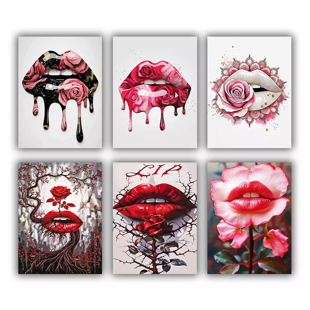 Lips with Rose Mini Paint By Numbers is a vibrant mini collection featuring shiny lips and rose accents, merging lush pinks, rich reds, drippy ink visuals, and sleek contemporary backdropsEvery mini canvas is labeled for simple paint coordination, and the kit comes with mini canvases, paint pots, and brushes for fast, enjoyable outcomes.